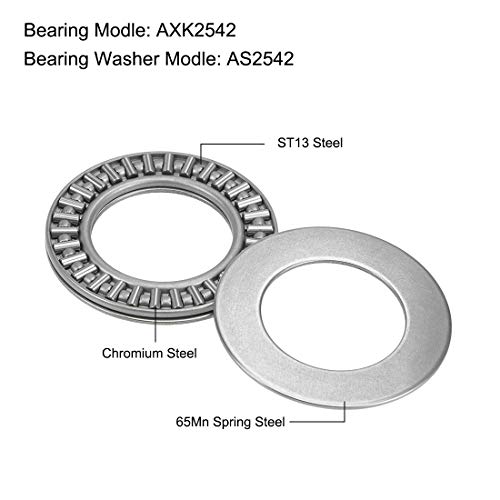 Sourcing map AXK2542 Pressione Assiale Rullino Cuscinetti con Rondelle 25mm Foro 42mm OD 2mm Larghezza 2pz