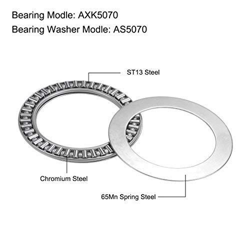 Sourcing map AXK5070 Pressione Assiale Rullino Cuscinetti con Rondelle 50mm Foro 70mm OD 3mm Larghezza 2pz