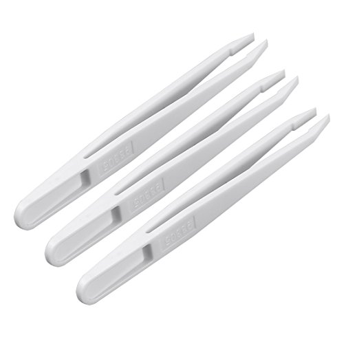 Sourcing map Bianco in plastica morbida punta inclinata pinzette antistatiche 4.7 pollici lunghezza 3pz.