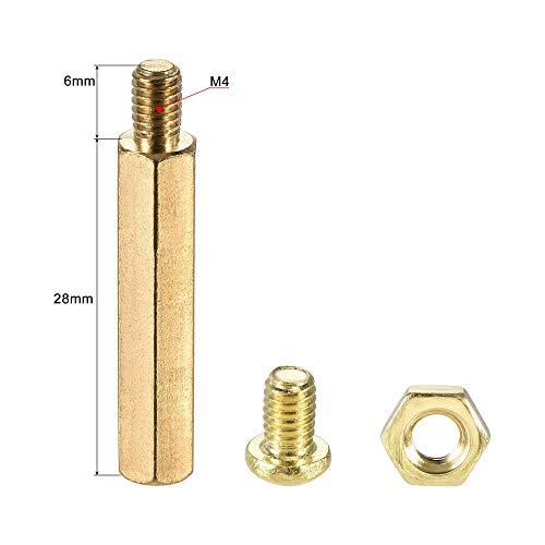 Sourcing map M4 Hex Brass Standoff distanziatore 28mm+6mm maschio-femmina filettato pilastro dado kit per scheda madre PCB circuito computer, 10 set