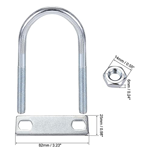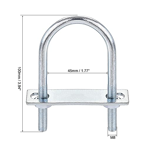 Sourcing map Bullone U Rotondo 1.77"(45mm) Larghezza Interna 100mm Lunghezza Acciaio M8 con Dado, Placca 1 Set