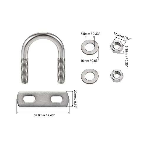 Sourcing map Bullone a U rotondo 29 mm, larghezza interna 54 mm, in acciaio M8 con dadi, piastra, rondelle 4 set
