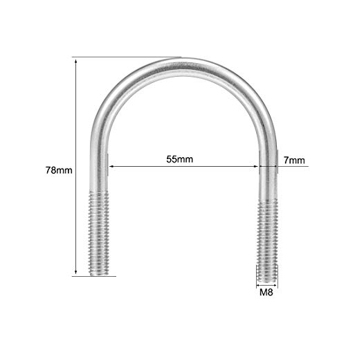 Sourcing map Bulloni a U 2-1/8 "(55mm) Larghezza interna 304 Acciaio inossidabile M8 Bullone a U di fissaggio per tubo da 51 mm di diametro 2 pezzi