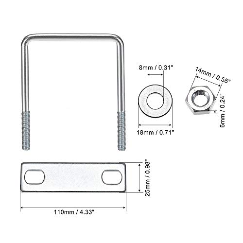 Sourcing map Bulloni a U quadrati 3-1/8 "(80mm) Larghezza interna in acciaio al carbonio M8 con dadi, piastra di telaio, rondelle rotonde