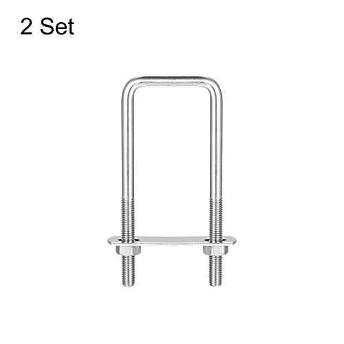 Sourcing map Bulloni a U quadrati, 2 set 42 mm larghezza interna 120mm lunghezza M8 304 acciaio inossidabile U morsetto bullone con dadi e piastre, per rimorchio barca