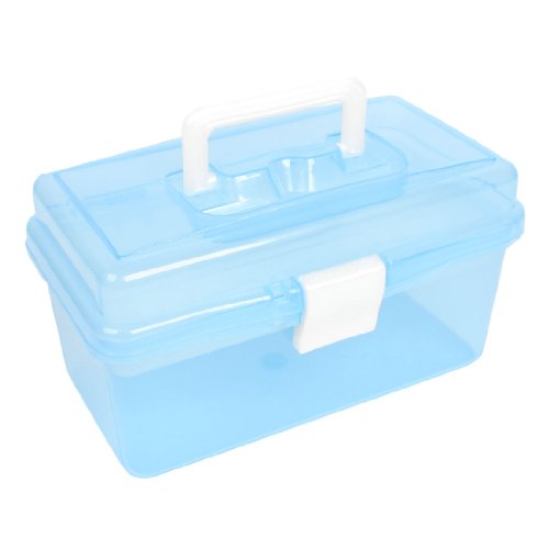 Sourcing map Cassetta Porta Attrezzi Doppio Strato Blu Trasparente