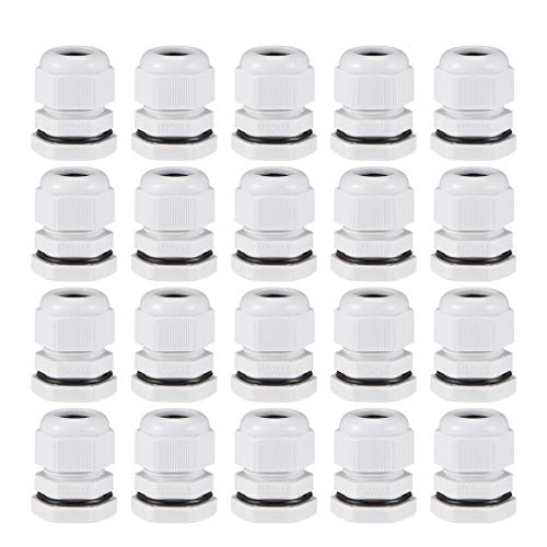 Sourcing map M20 x 1,5 Cavo Ghiandola 6 mm-12 mm Foro Filo Impermeabile Nylon Giunto Regolabile Dado con Rondella Bianco 20 pz