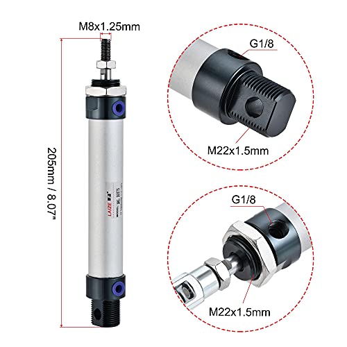 Sourcing map Cilindro pneumatico 20mm foro 75mm corsa con connettore Y e raccordi rapidi, MAL 20x75, per attrezzature automatiche
