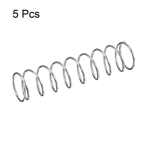 Sourcing map Compressione Molla, 304 Acciaio inossidabile Acciaio, 10mm OD, 0,7mm Filettatura Dimensioni, 9mm Compresso Lunghezza, 40mm Libero Lunghezza, 11,8N Capacità Carico, Argentato, 5pz