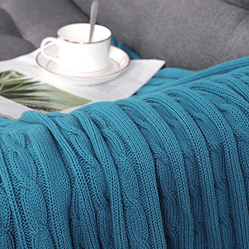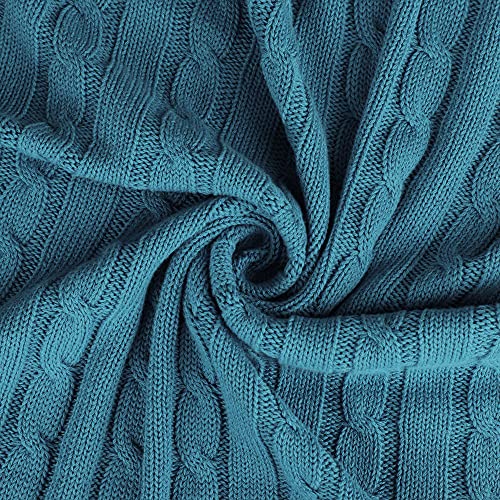 Sourcing map - Coperta in cotone lavorata a maglia, morbida, per divano e letto, blu foglia di tè (180 x 200 cm)