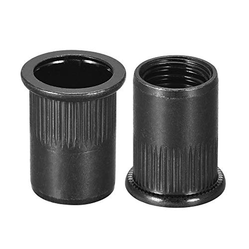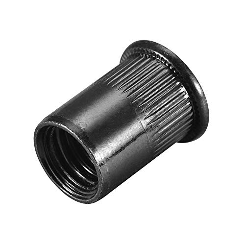 Sourcing map M12 - Dado per rivetti in acciaio al carbonio zincato a testa piatta zigrinata, filettato, 20 pezzi, colore: nero