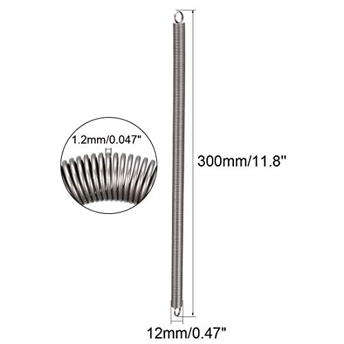 Sourcing map Estensione Molla - 1.2mm Filo Diametro 12mm OD 300mm Libero Lunghezza Molla Acciaio Piccolo Doppio Gancio Tensione Molla 2pz
