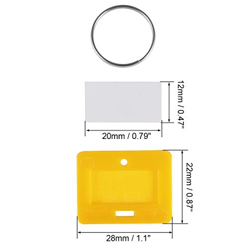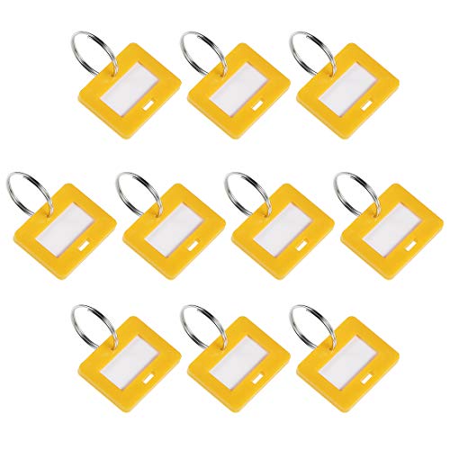 Sourcing map Etichette chiave in plastica con anello diviso portachiavi ID bagagli etichetta finestra 28x22mm, giallo 10 pezzi