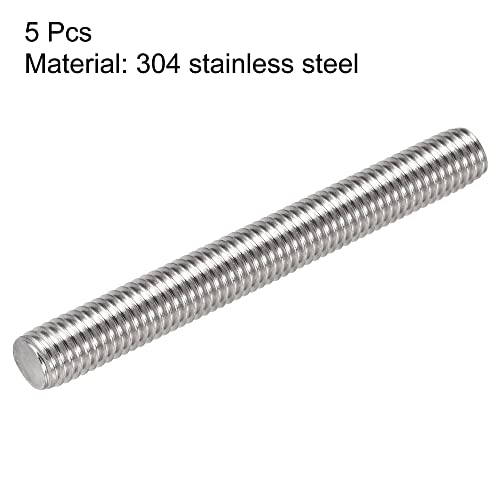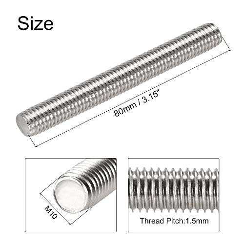 Sourcing map 5 filettature M10 x 80 mm completamente filettate in acciaio inox 304, passo filettatura M10-1.5