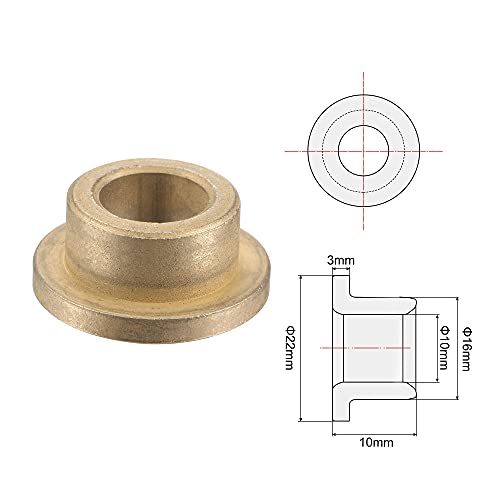 Sourcing map Flangia Manicotto Cuscinetti 10mm Alesaggio 16mm OD 10mm Lunghezza 22mm Diametro flangia 3mm Spessore Flangia Bronzo sinterizzato Autolubrificante Boccola 4pcs