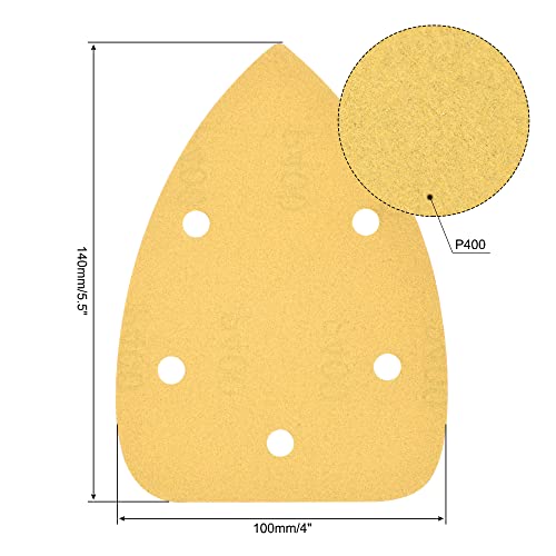 Sourcing map 5 Fori Triangolo Carta Vetrata 400 Grana (P400) Extra Fine Abrasivo 5,5 pollici Alluminio Ossido Levigatura Fogli Uncino e Ansa Supporto 20pz