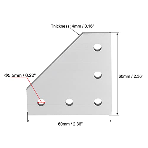 Sourcing map 5 foro forma L esterno piastra giunzione per 2020 profilo alluminio 4 pz (argento)