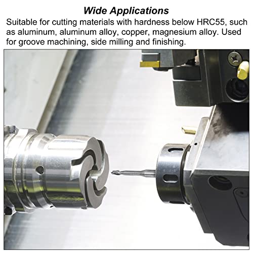 Ampie applicazioni: Adatto per il taglio di materiali con durezza inferiore a HRC55, come alluminio, lega di alluminio, rame, lega di magnesio. La parte di gioco è la stessa del diametro di taglio, appositamente progettata per la lavorazione di fori profondi e scanalature profonde.