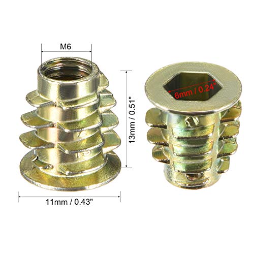 Sourcing map Inserto filettato dadi in lega zinco esagonale veloce a brugola M6 filettature interne 13mm Lunghezza 50pz