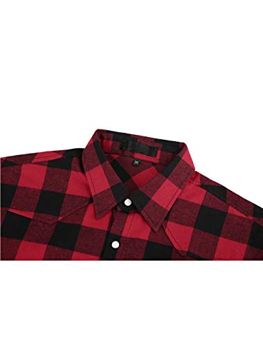 Sourcing map Maniche Lunghe Uomini Bottone Stampa Fino Camicia in Flanella