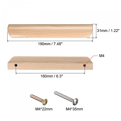 Sourcing map Maniglie in legno, 5 pomelli in legno da 160 mm, distanza tra i fori per cassetti in legno non finiti, per mobili da cucina, cassetti, armadietti