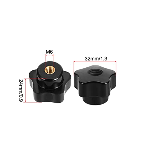 Sourcing map Manopole stella impugnatura presa M6 Diametro inserto ottone con filettatura femmina serie 6 nero