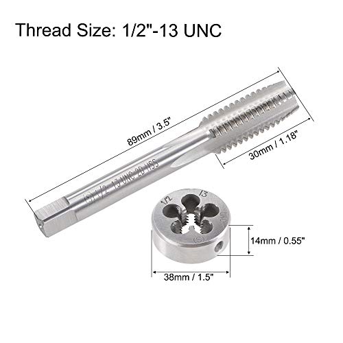 Sourcing map 1/2"-13 UNC - Set di maschi e fustelle, filettatura HSS con filettatura rotonda, mano destra
