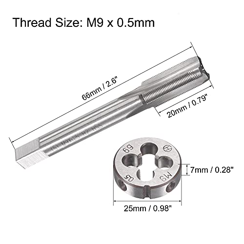 Sourcing map M9 x 0,5 mm metrico rubinetto e matrice set, HSS filettatura macchina rubinetto con strumento in lega acciaio filettatura rotonda Die