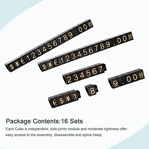 Sourcing map Mini cubo rimovibile regolabile con numero di visualizzazione per etichette dei prezzi per banconi del negozio oro su nero, 3,3 x 5,6 mm, 16 set