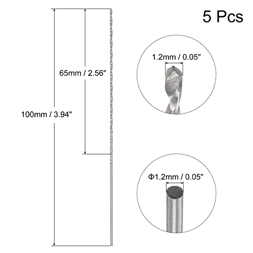 Sourcing map 5 mini micro punte elicoidali da 1,2 mm, in acciaio ad alta velocità, codolo dritto, extra lungo, 100 mm, per lega di alluminio