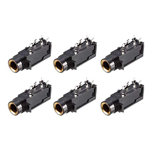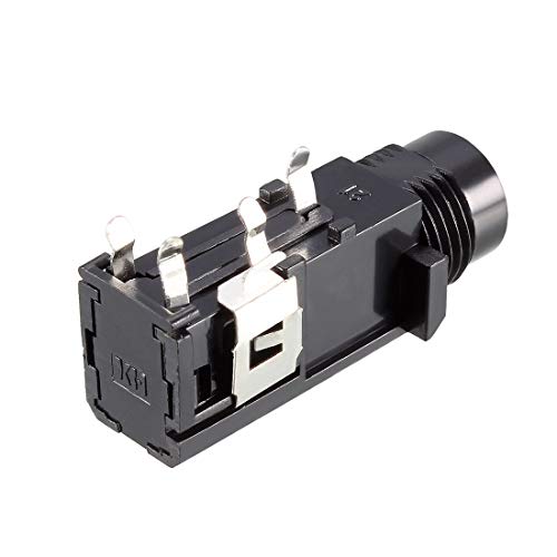 Sourcing map PCB Montaggio 6.35mm 4 Pin Presa Cuffie Stereo Jack Audio Video Connettore Nero 6pz