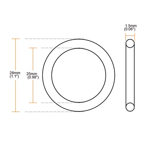 Sourcing map Nitrile Gomma O-ring, 28mm OD 25mm ID 1,5mm Larghezza, Metrico Isolante Guarnizione, Confezione da 10