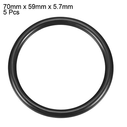 Sourcing map Nitrile Gomma O-ring 70mm OD 59mm ID 5,7mm Larghezza, Metrico Isolante Guarnizione, Confezione da 5