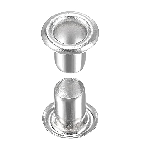Sourcing map Occhielli con Rondelle, 8 x 4 x 7mm Rame Attraverso Foro Cavo Ribattini Guarnizioni Argento Tono 100 Set