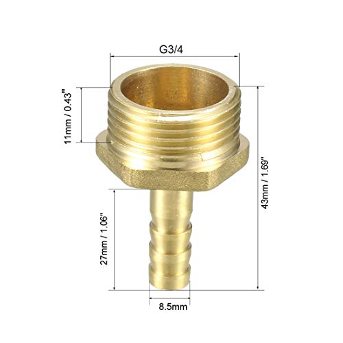 Sourcing map Ottone Barb Tubo Raccordo Adattatore 8.5mm Spinato X G3/4 Maschio Tubo 2pcs