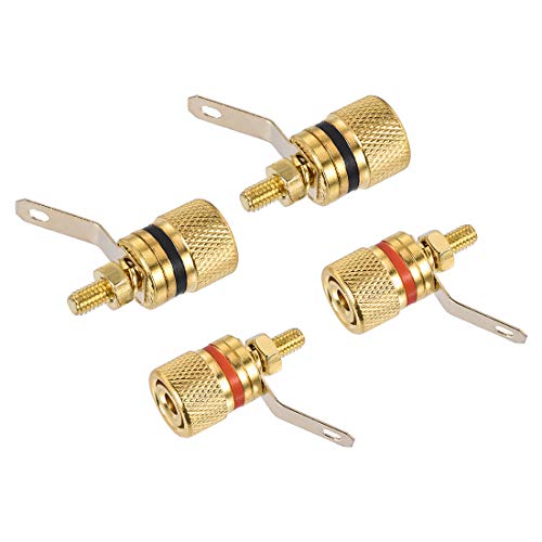 Sourcing map 4 Pack 4mm Banana Jack Connettore Diffusori Oro Placcato Femmina Presa Spina Terminale Connettore per Altoparlante Amplificatore (Rosso e Nero Anello Gomma)