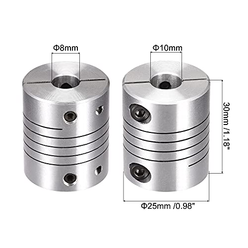 Sourcing map 2 pezzi albero motore 8 mm a 10 mm accoppiatore a fascio elicoidale 25 mm diametro 30 mm lunghezza