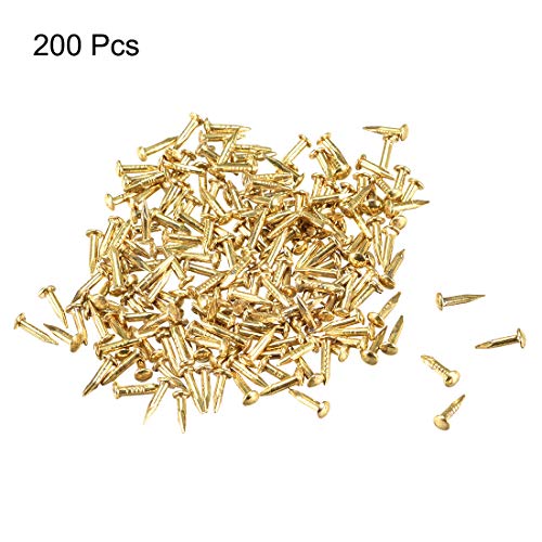 Sourcing map Piccoli Piccoli Chiodi 1X6mm(DxL) per Legno Fai-da-te Decorativi Immagini Scatole Per casa Accessori Ottone Tono 200pz
