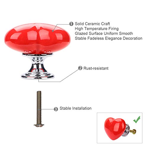 Sourcing map, 6 pomelli in ceramica per cassetti, a forma di cuore, per mobili, porte, armadi, armadi, credenze, armadi, cassettiere, colore: rosso