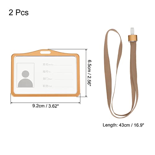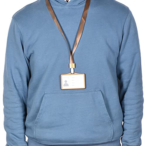 Sourcing map Porta Badge Porta Badge 9.2x6.5cm Orizzontale Alluminio Porta ID Porta con Metallo Gancio Staccabile Collo Cordino, Oro Tono pz 2