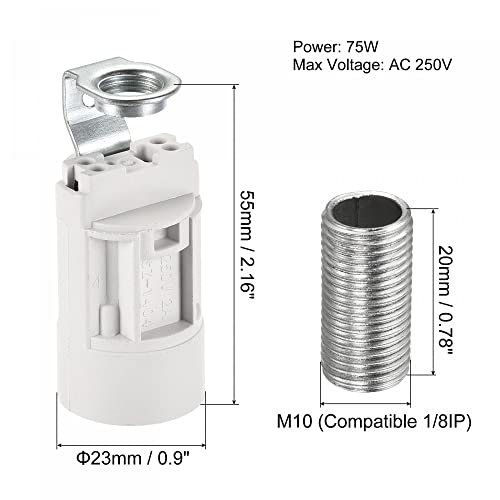 Sourcing map Portalampada in plastica con attacco E14, 23 x 55 mm, con dado filettato M10, per lampadina E14, confezione da 6