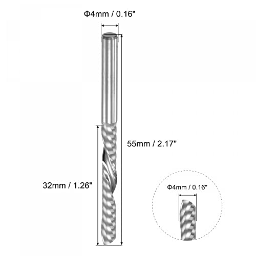 Sourcing map Punta per fresa CNC per fresa a testa, 4 mm, gambo 4 mm x 32 mm, carburo sinistro, singolo flauto a spirale, fresa per intaglio in acrilico, PVC, MDF, legno duro