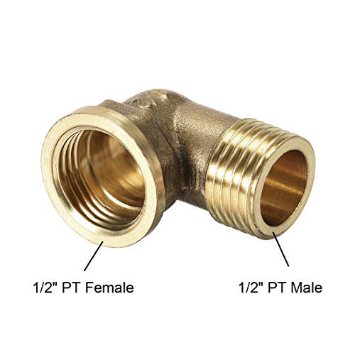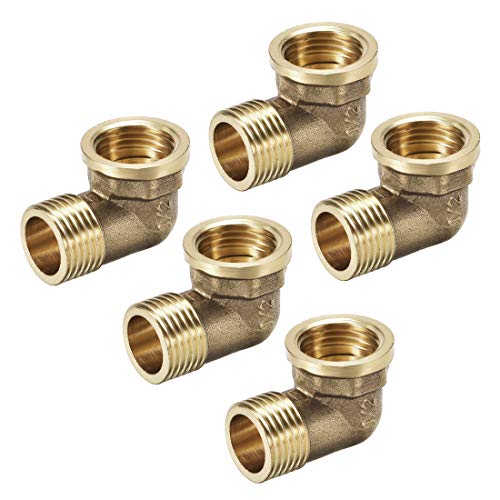 Sourcing map Raccordo per tubi in ottone a 90 gradi gomito 1/2 PT maschio x 1/2 PT femmina 5 pezzi