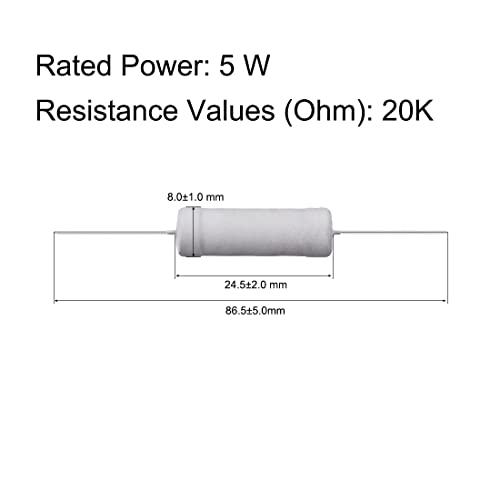 Sourcing map 30 resistenze da 20 K Ohm, 5 W 5% di tolleranza di ossido di metallo, piombo assiale, fiamma per progetti elettronici fai da te ed esperimenti