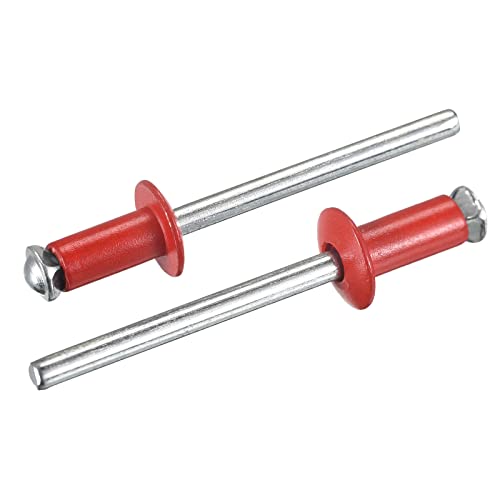 Sourcing map Rivetti ciechi in alluminio, 5 mm x 10 mm, testa rotonda piatta per unire piastra metallica, colore rosso 25 pezzi