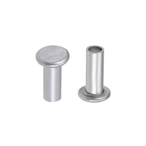 Sourcing map - Rivetti semi-tubolari a testa piatta, in alluminio, 5 mm x 12 mm, colore: Argento