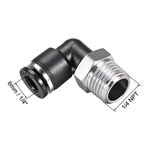 Sourcing map Spingere Collegare Tubo Raccordo Maschio Gomito 6mm Tubo OD x 1/4 NPT Filettatura Pneumatico Aria Spingere Montare Bloccare Raccordo 4 pezzi