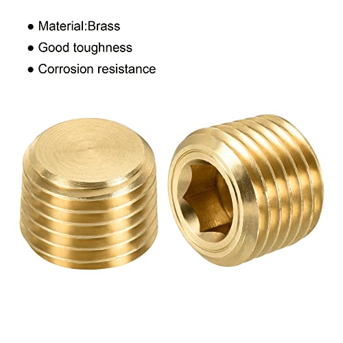 Sourcing map Tappo per tubo in ottone 1/4 NPT filettatura maschio esagonale testa interna raccordo per tubazioni di carburante aria acqua confezione da 6