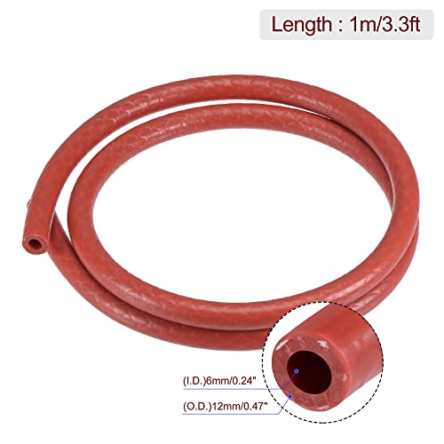 Sourcing map, Tubi flessibili vuoti in silicone per riscaldamento, rinforzati, resistenti a temperatura elevata, per motori, diametro interno: 6 mm, 1 m, 101 psi, 200 °C, colore rosso