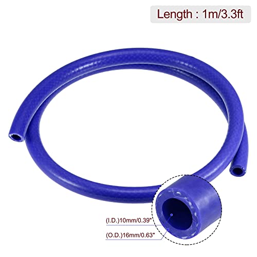 Sourcing map, Tubi flessibili vuoti in silicone per riscaldamento, rinforzati, resistenti a temperatura elevata, per motori, diametro interno: 10 mm, 1 m, 101 psi, 200 °C, colore blu